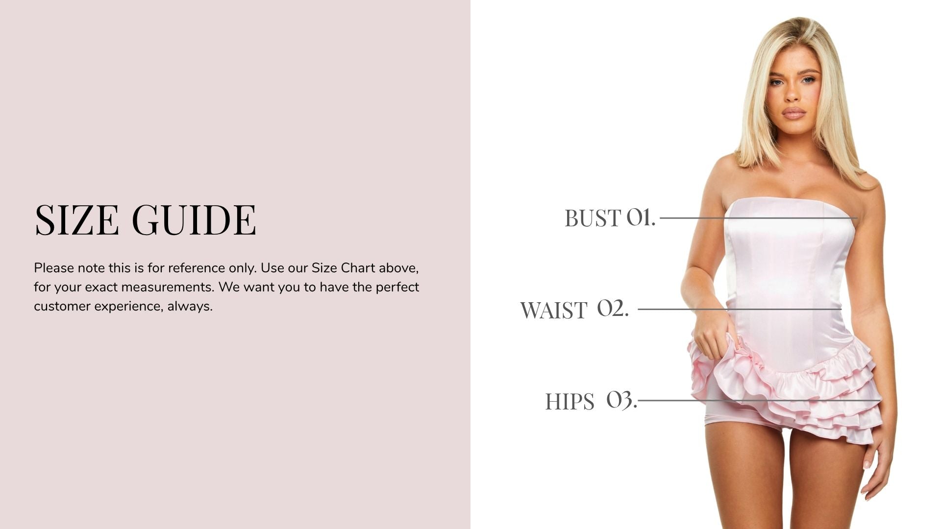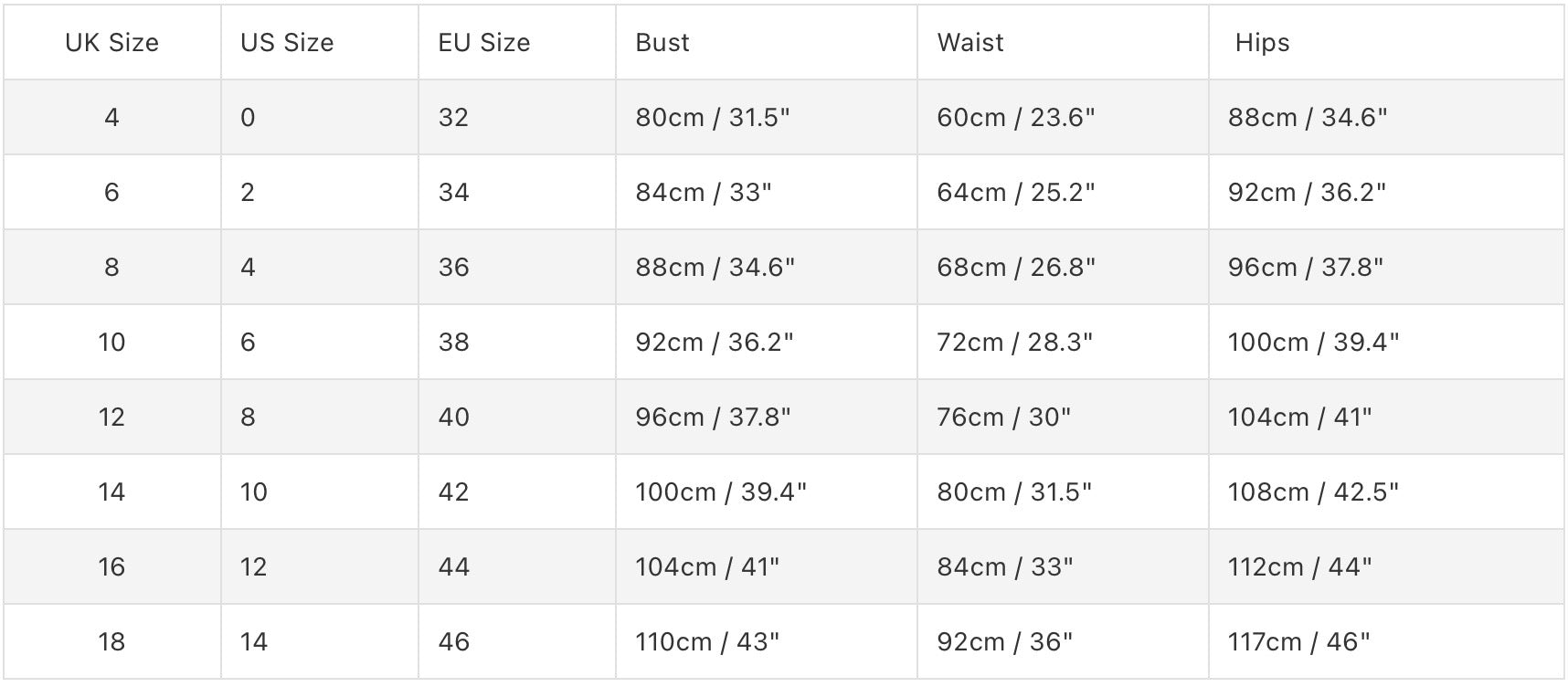 We've taken the time to carefully perfect our size chart to ensure it reflects exact body measurements. Each size has been thoughtfully developed to provide a true-to-fit experience across all our designs. For more details on a specific item, you can find stretch, sizing and fabric information on the product's page, including how our customers say it fits. We recommend measuring yourself against our size chart, to ensure you get the perfect fit.