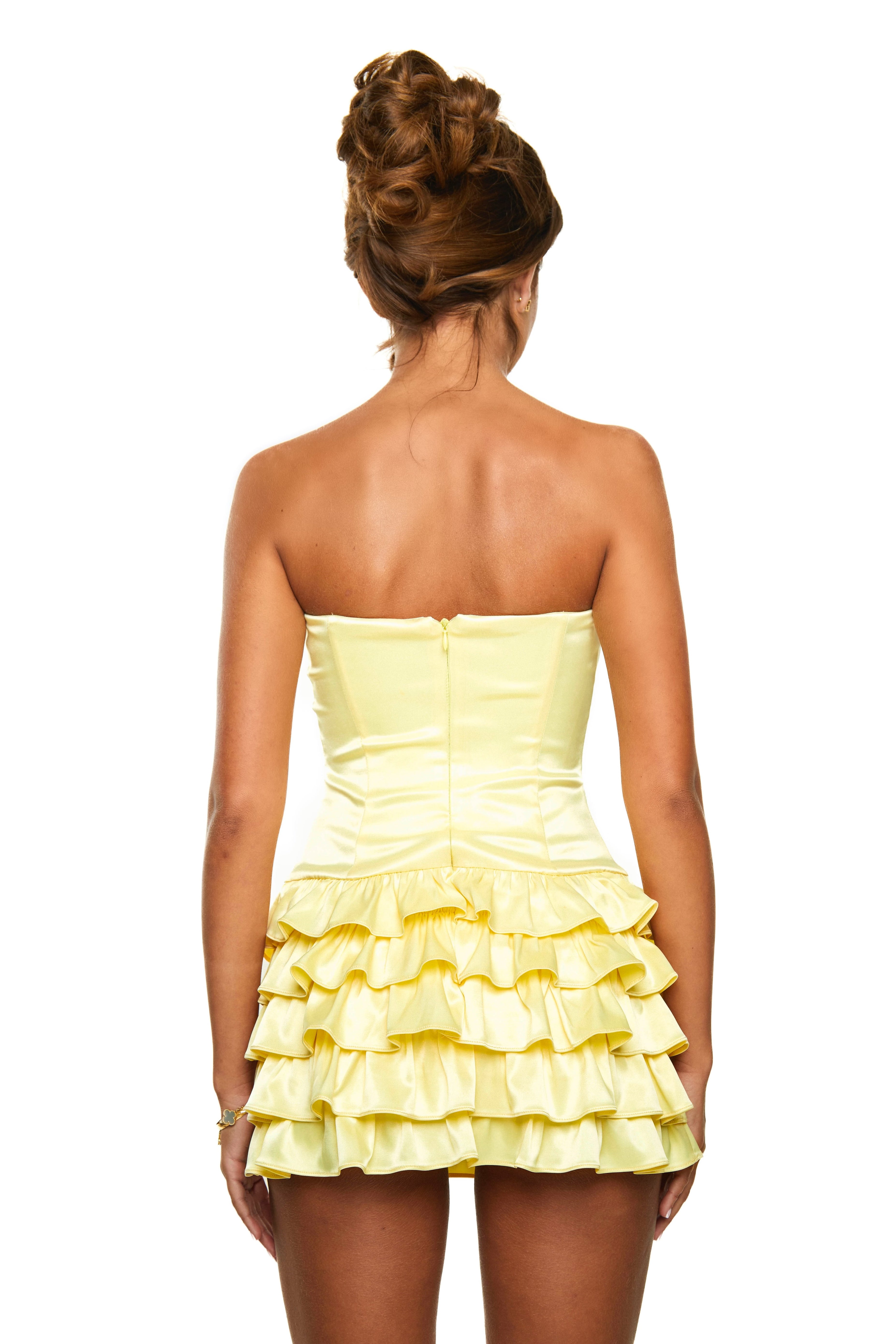 Arabella is our all-time bestselling mini dress, now reimagined in the dreamy pastel yellow shade ‘Lemon.'